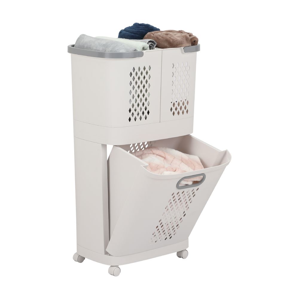 ตะกร้าผ้า 2 ชั้นมีล้อ รุ่นโนริมะ - สีขาว